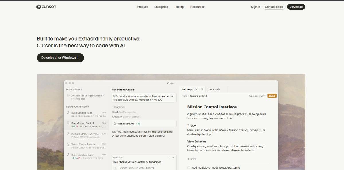 Cursor integrates advanced AI capabilities directly into the coding environment, enabling developers to generate, refactor, and debug code using natural language prompts. The platform is designed to reduce development time and streamline complex software engineering tasks.
